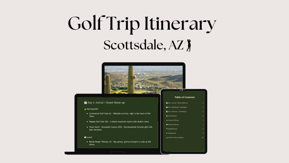 Whether you're planning a bachelor party, an annual buddies trip, or just one more excuse to tee it up in the desert, this 3-day Scottsdale itinerary delivers. From world-class desert golf to high-energy nightlife, it’s designed to help your crew skip the planning stress and show up ready for greatness.